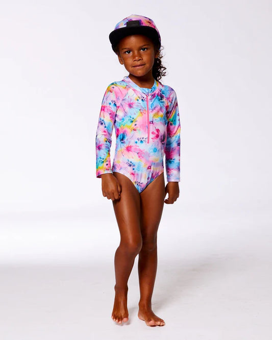 Rashguard à manches longues imprimé avec fleurs sur fond multicolore