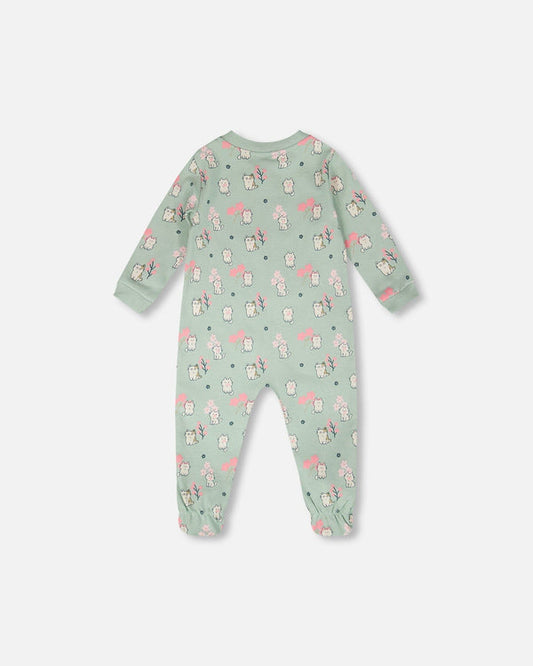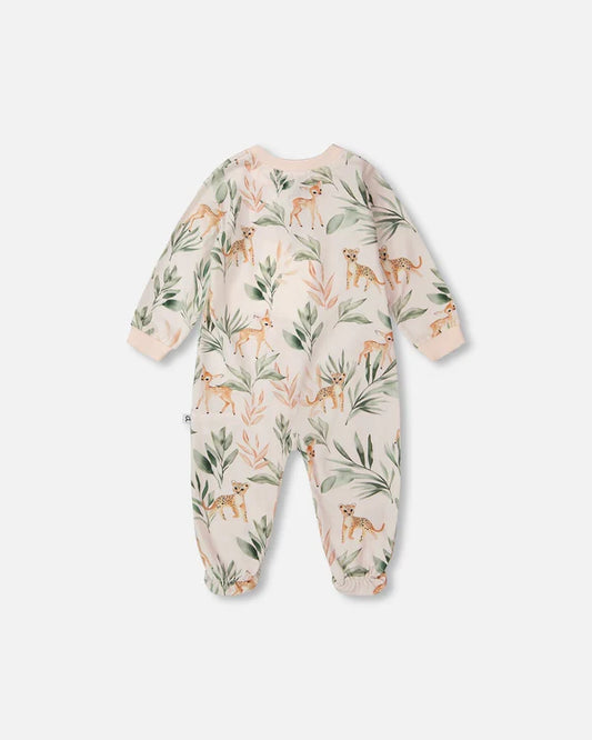 Pyjama une-pièce en jersey de coton biologique pêche imprimé cerfs