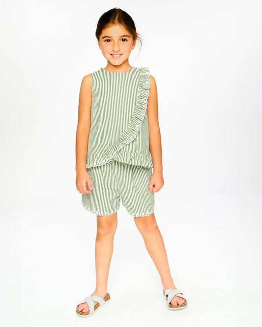 Camisole à rayures vertes et blanc cassé avec volant brodé