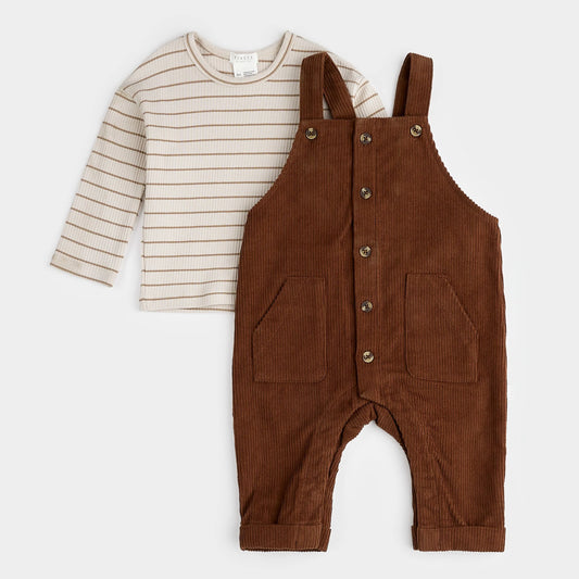 Ensemble Cache-Couche Beige Chiné Avec Imprimé De Chiens Et Salopette Cannelle En Coton Biologique