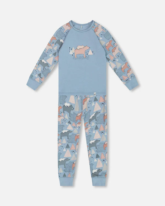 Ensemble pyjama 2-pièces bleu ciel imprimé mamans ours en coton biologique