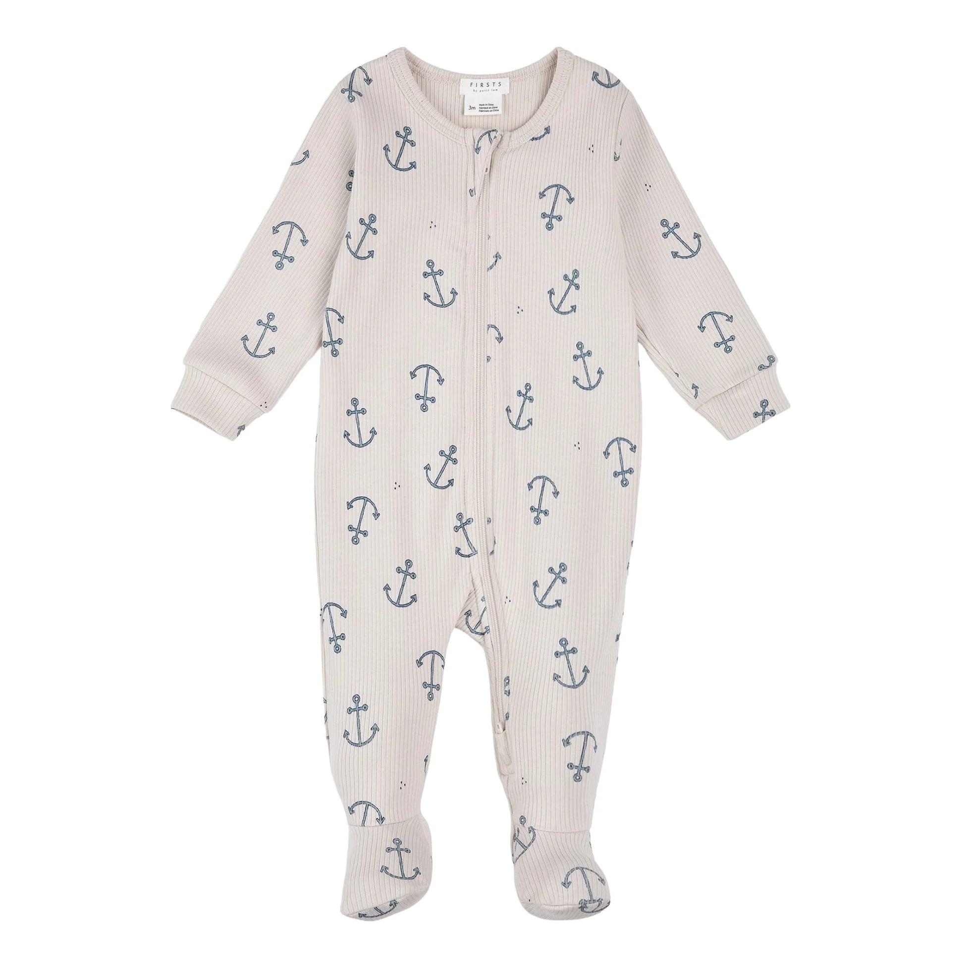 Pyjama une pièce côtelé beige imprimé encre de bateau.